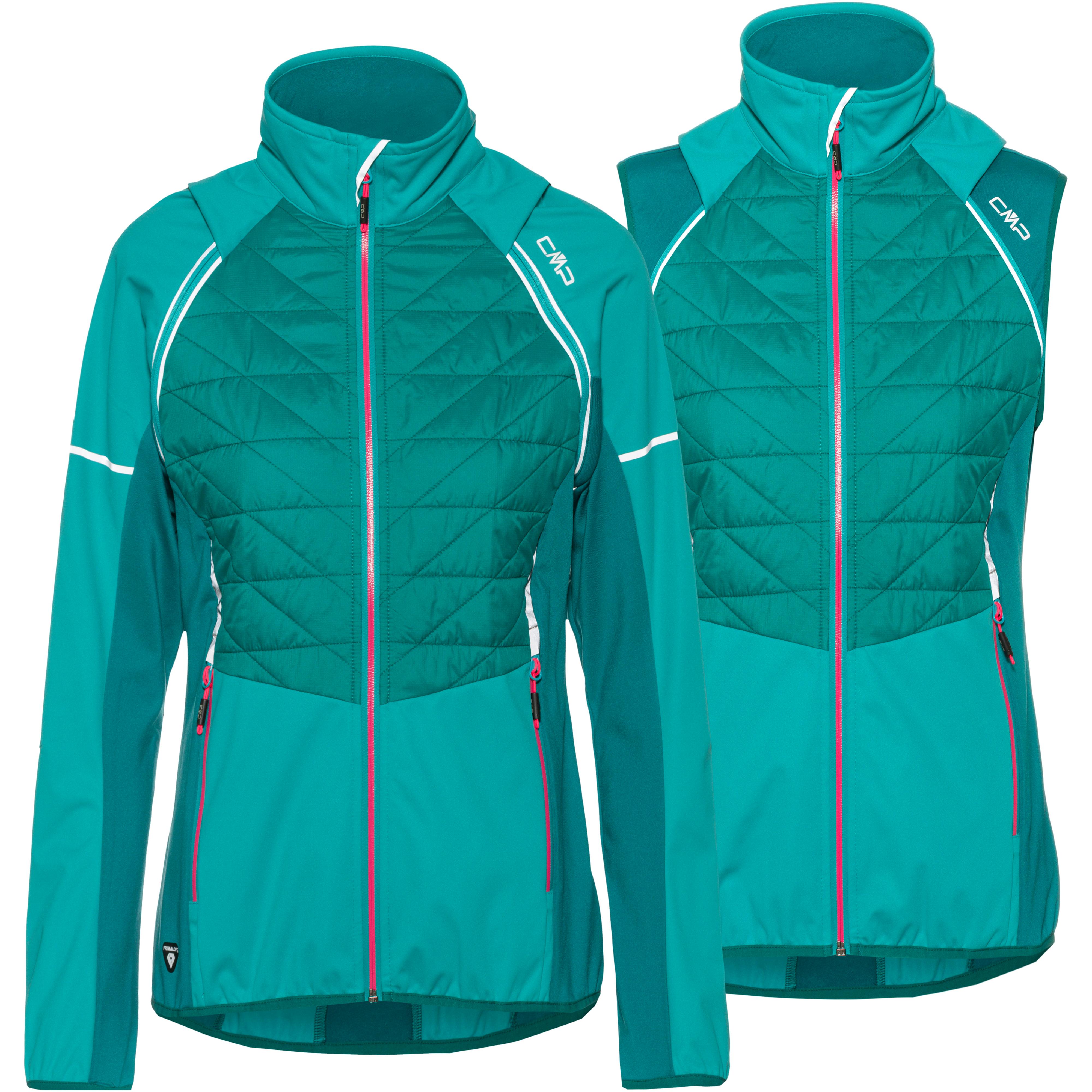 CMP Softshelljacke mit wind- und wasserdichter ClimaProtect®-Funktion; Wassersäule 5.000 mm; strapazierfähige Front aus Ripstop-Gewebe, mit hoch wärmeisolierender PrimaLoft®-Wattierung; Stehkragen mit Kinnschutz und wärmendem Fleecefutter; bewegungsfreundliche, abnehmbare Raglanärmel; integrierte, elastische Gamaschen mit Daumenschlaufen; hinterlegter Frontreißverschluss; Seitentaschen mit Reißverschlüssen und Zipgaragen; verlängerte Zippbändchen; mit Mesh hinterlegte Perforationen im Rückenbereich, verbessern die Ventilation bei allen Aktivitäten; strategisch platziertes Fleecefutter, für eine höhere Wärmeisolation; elastischer Bund; Material I 100% Polyester, Material II 88% Polyester, 12% Elastan.
