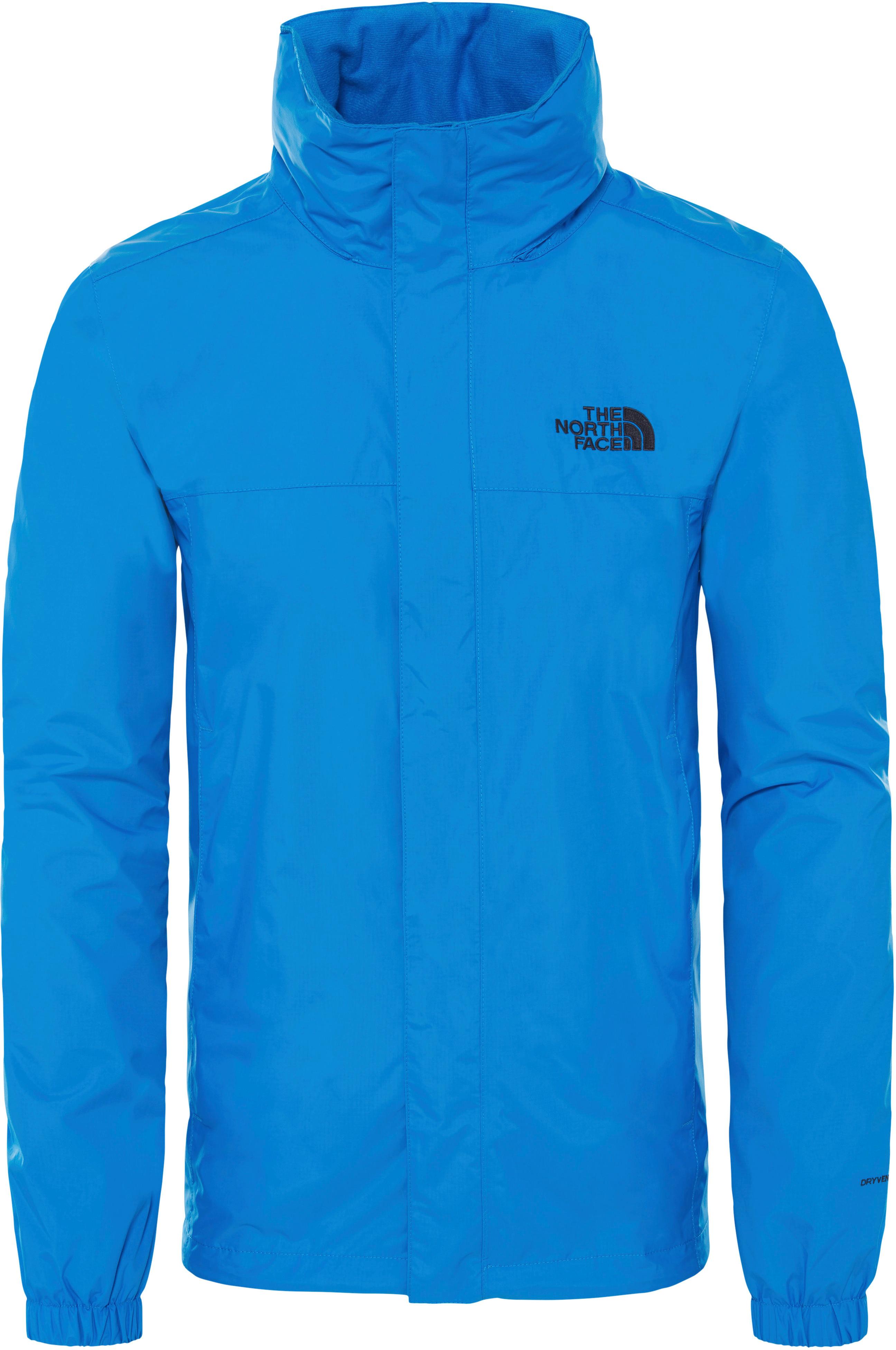 The North Face RESOLVE 2. Wasserdichte 2-Lagen-Regenjacke mit HyVent-Technologie; besonders hohe Atmungsaktivität; angenehm weich gefütterter Stehkragen; unterlegter und mit Klettpatte abgedeckter Frontreißverschluss; im Kragen verstau- und verstellbare Kapuze, 2 verdeckte Reißverschlusstaschen; elastische Ärmelabschlüsse und mit Kordelzug 2-fach verstellbarer Saumabschluss; Meshfutter; getapte Nähte; reißfestes Ripstop-Obermaterial; Material 100% Polyamid.